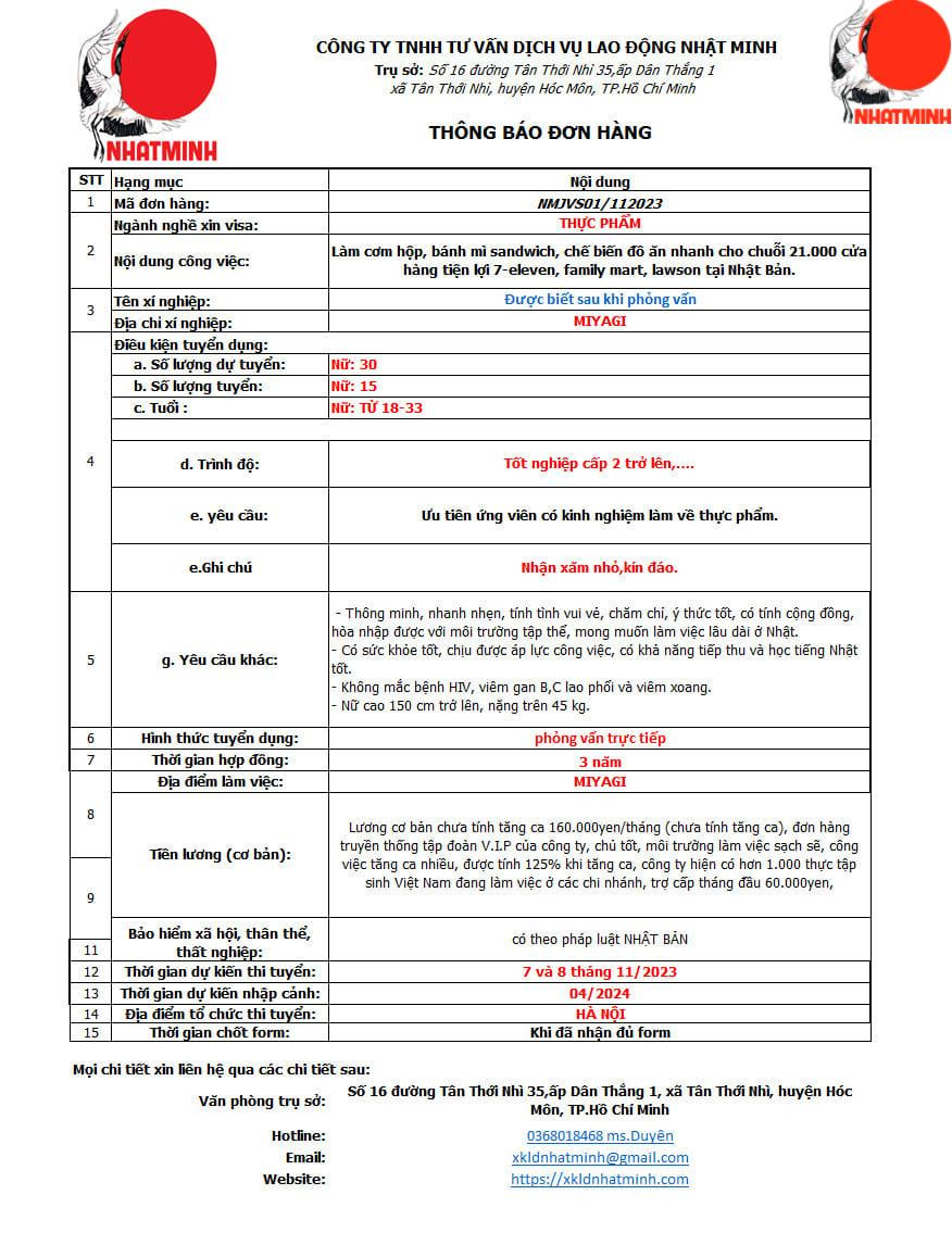 Lợi ích của việc xuất khẩu lao động ngành thực phẩm đến Nhật Bản